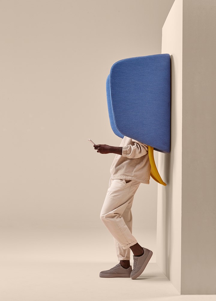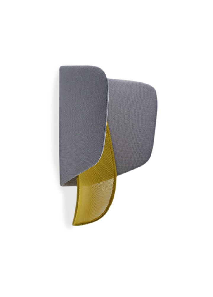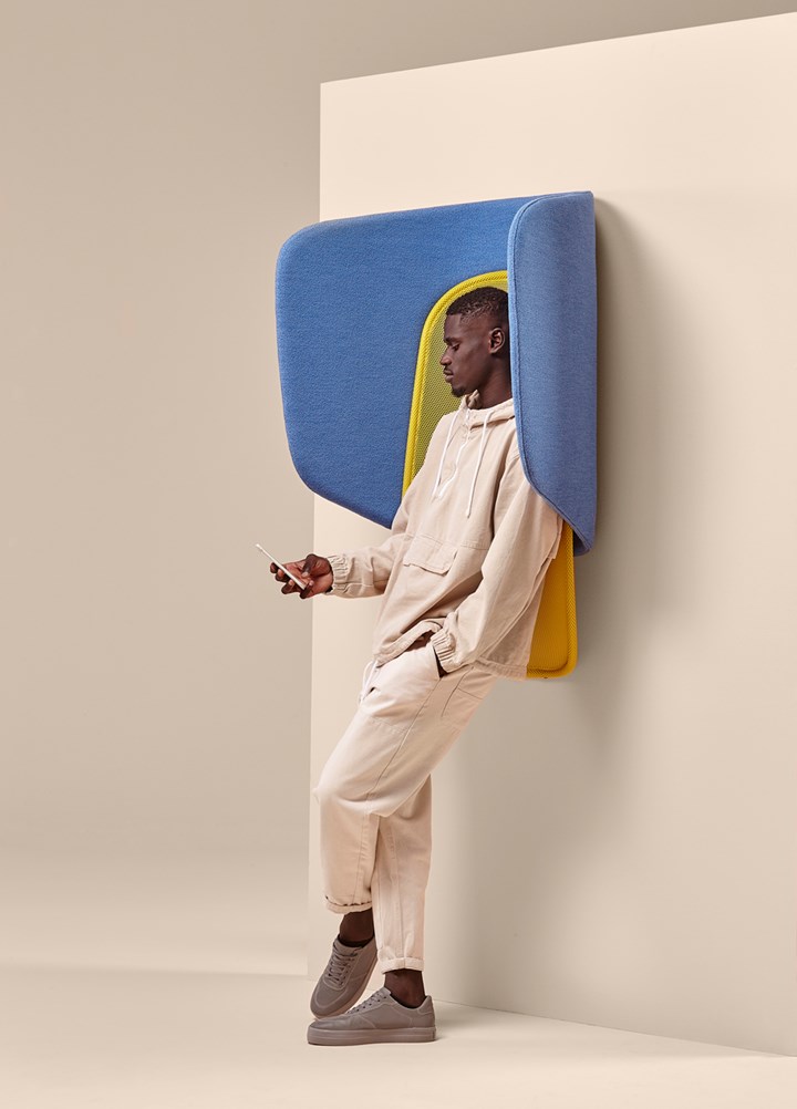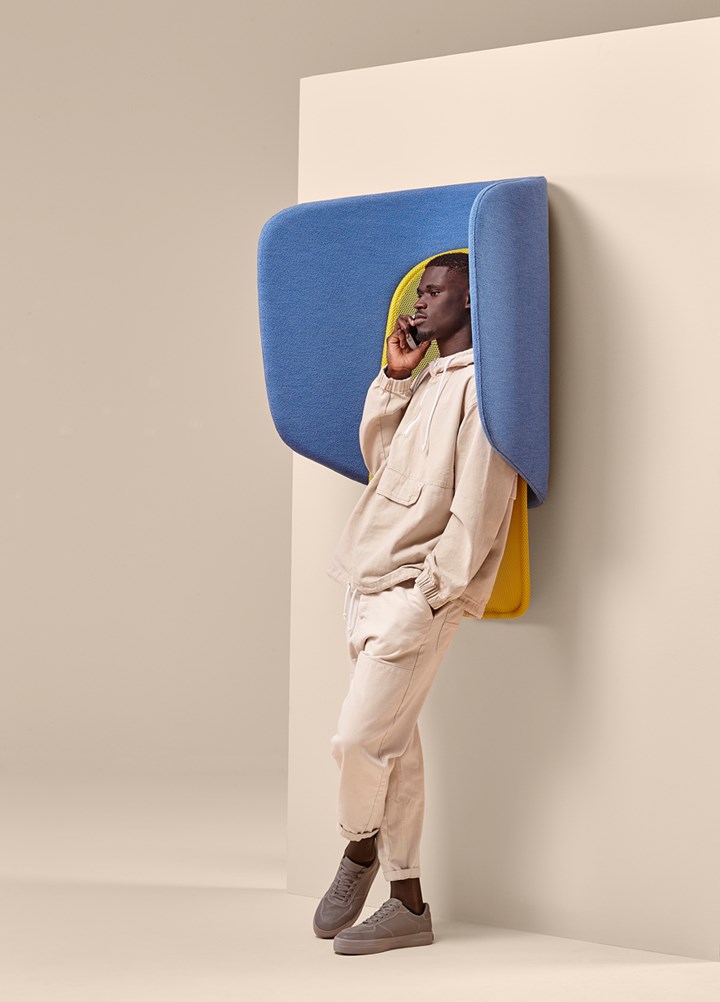 The “hood” contributes to improve acoustics thanks to its curved upholstered panels. The shape reflects sound back to the person making a call, causing them to naturally lower their voice, while the padded upholstery helps to dampen the room’s reverberation.