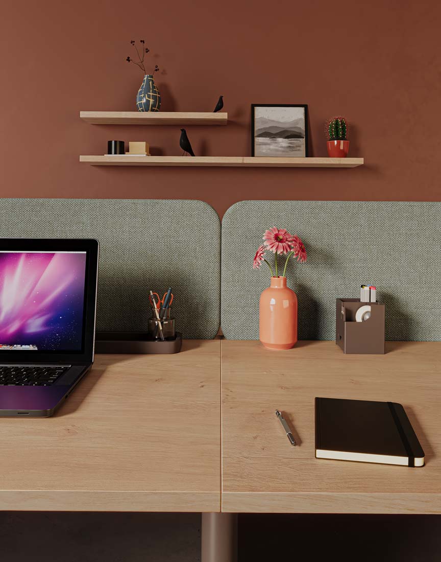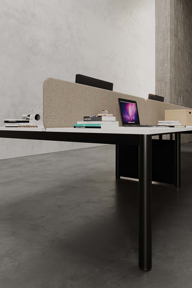 Slide-On Divider Screens provide flexible options for acoustic and visual privacy between work points. The different finishes offer a range of aesthetic styles and can complement any fitout.
