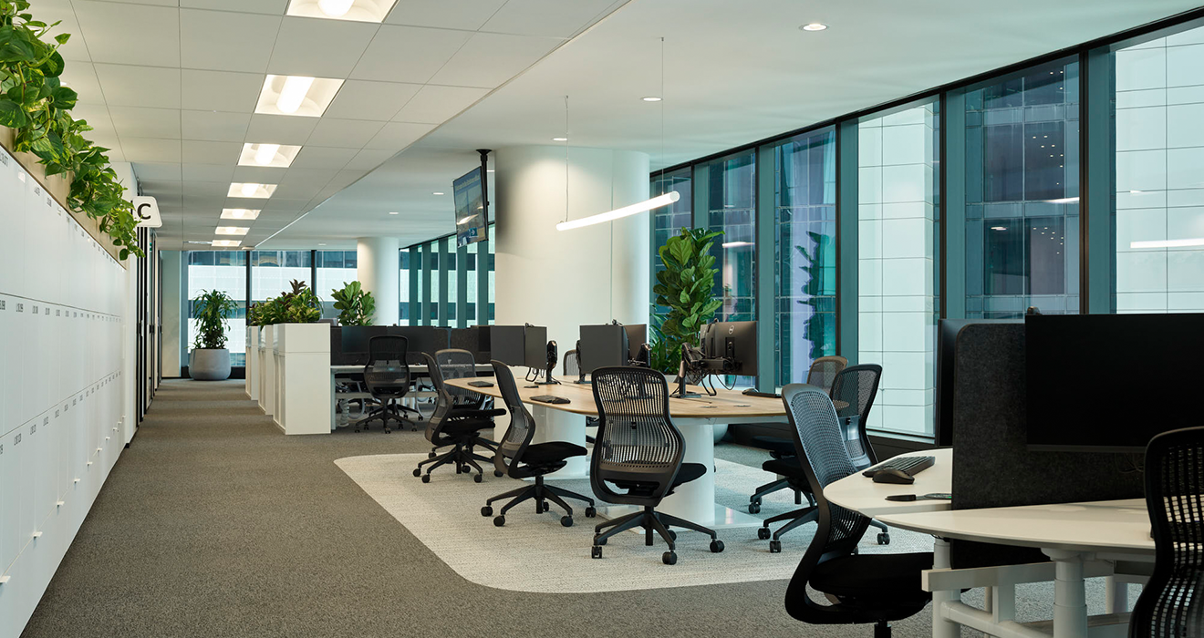 A prominent insurance group launched an initiative several years ago to revamp their office setups, starting in Australia. This initiative was driven by the company's dedication to streamlining operations, enhancing communication and efficiency, and striving to meet long-term sustainability targets by reducing operational emissions. Their most recent office transformation was in Brisbane designed by Group GSA.