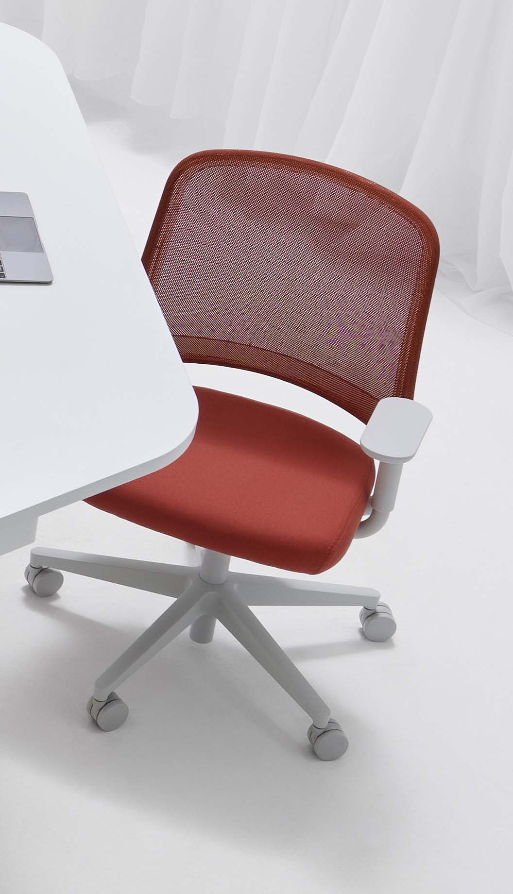 Enhance you. Denn’s refined aesthetic encapsulates simplicity, bringing new levels of elegance to any workplace. The unique and transparent polycarbonate feature allows Denn to respond to changing light and effortlessly blend into any space. The Denn chair is available in seven statement colours with varying saturations, finishes and transparencies.
